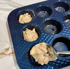 6. Spray muffin tins or use paper cup liners. Fill 2/3 full evenly. I used an ice cream scoop. Sprinkle sugar and cinnamon on top.