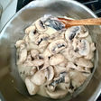 White sauce: Melt margarine into a saucepan. Add flour, stirring until the margarine and flour are combined. Add almond milk and stir until the mixture is smooth. Add the mushrooms and stir gently to combine.