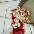 Looking for an elegant, delicious dinner with a simple prep? This is the recipe for you! The slightly spicy pastrami adds a fabulous flavor to the chicken when baking. The white sauce made with almond milk is lighter than with milk or cream and is mouthwatering with the mushrooms spooned on top. This dinner is so easy to put together. Prep the chicken and pastrami and white sauce ahead of time. Combine before baking and the entire preparation is quick, giving you enough energy to enjoy your company! The dish reheats well. What is so versatile is that it’s also a simple enough dish for yourself on a weeknight.